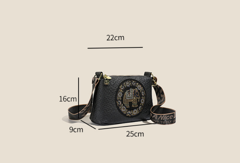 Size: upper width 22cm, lower width 25cm, thickness 9cm, height 16cm, shoulder strap 120cm