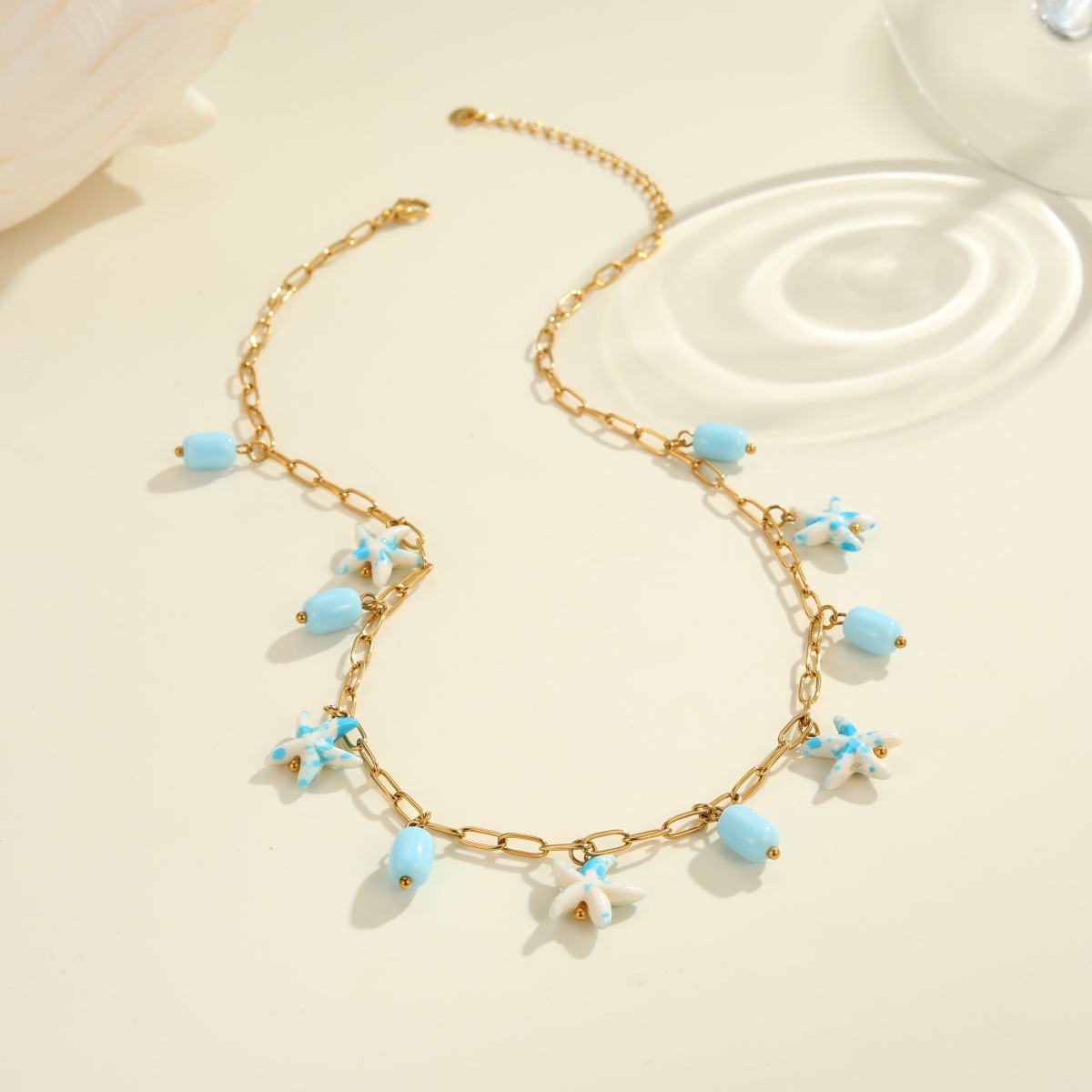 Colorful Starfish Stainless Steel Necklace Non-fading Ocean Style Bracelet