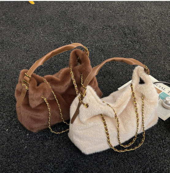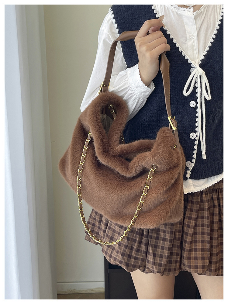 Large Capacity Fur Bag Women's Shoulder Messenger Bag