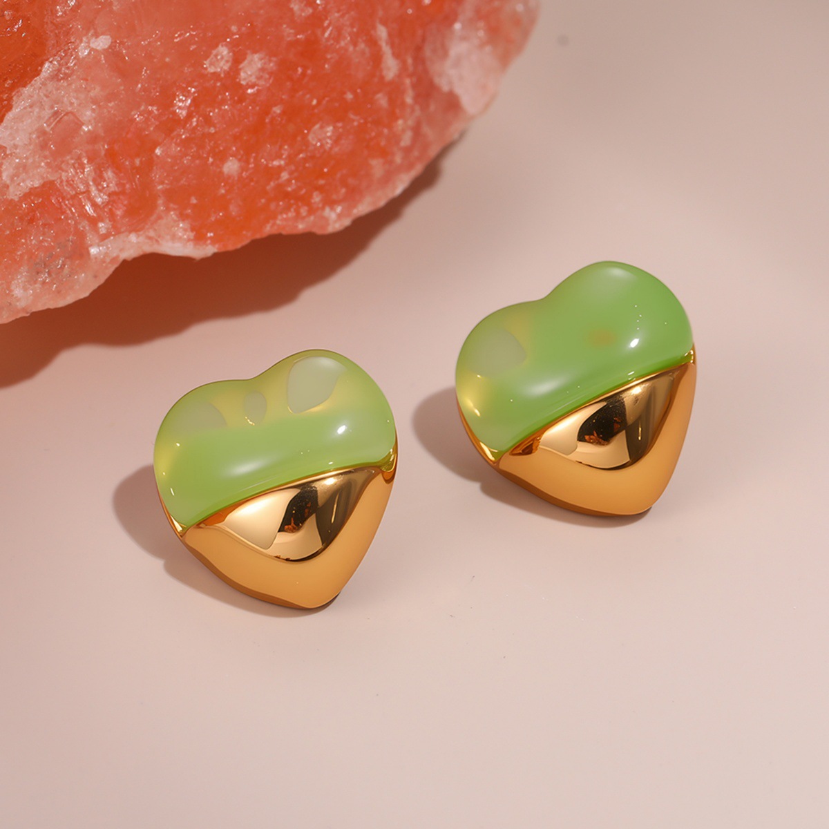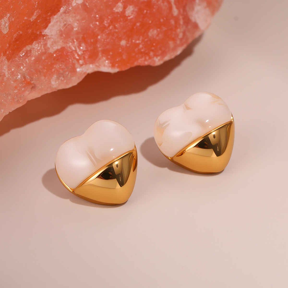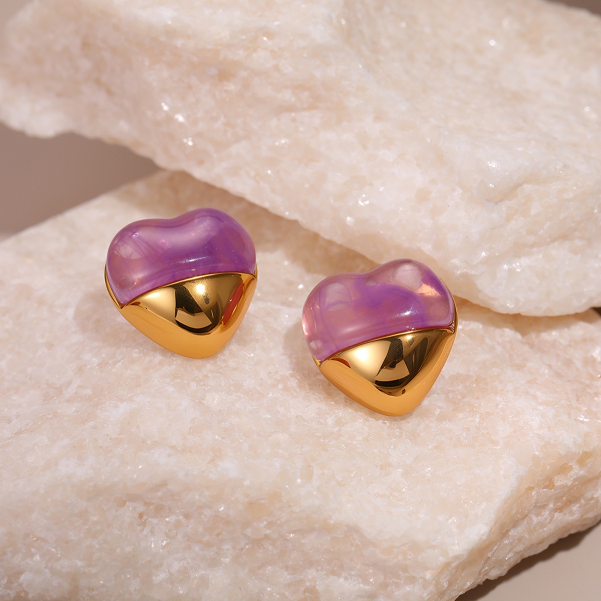 Love Heart-shaped Resin Stud Earrings Stainless Steel Earrings 18K Gold Plating