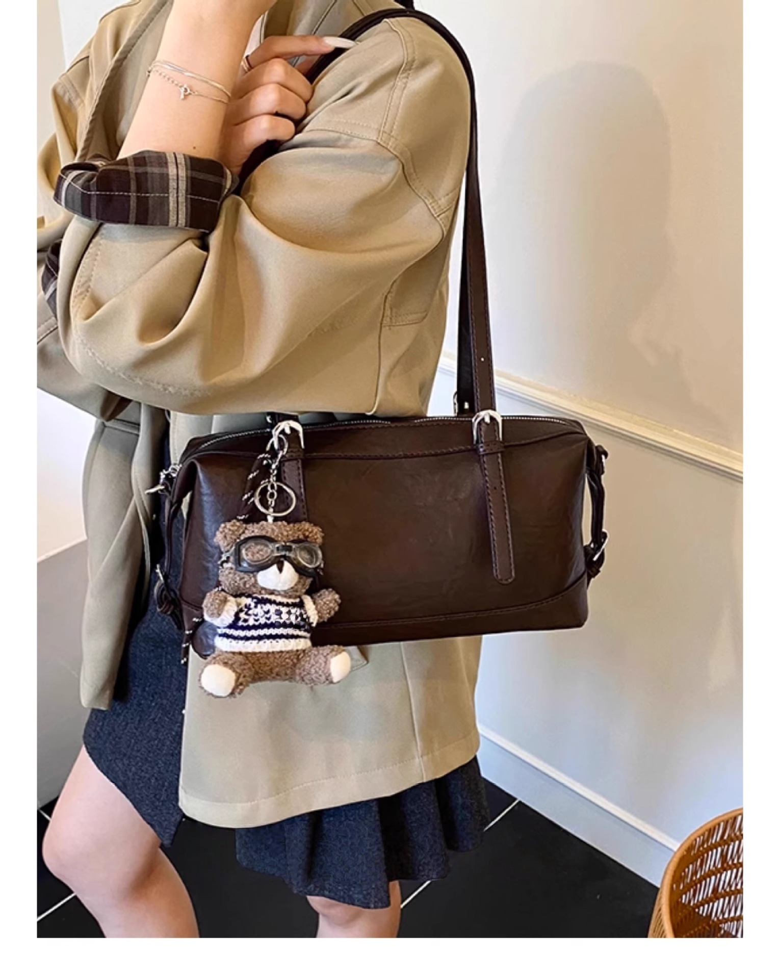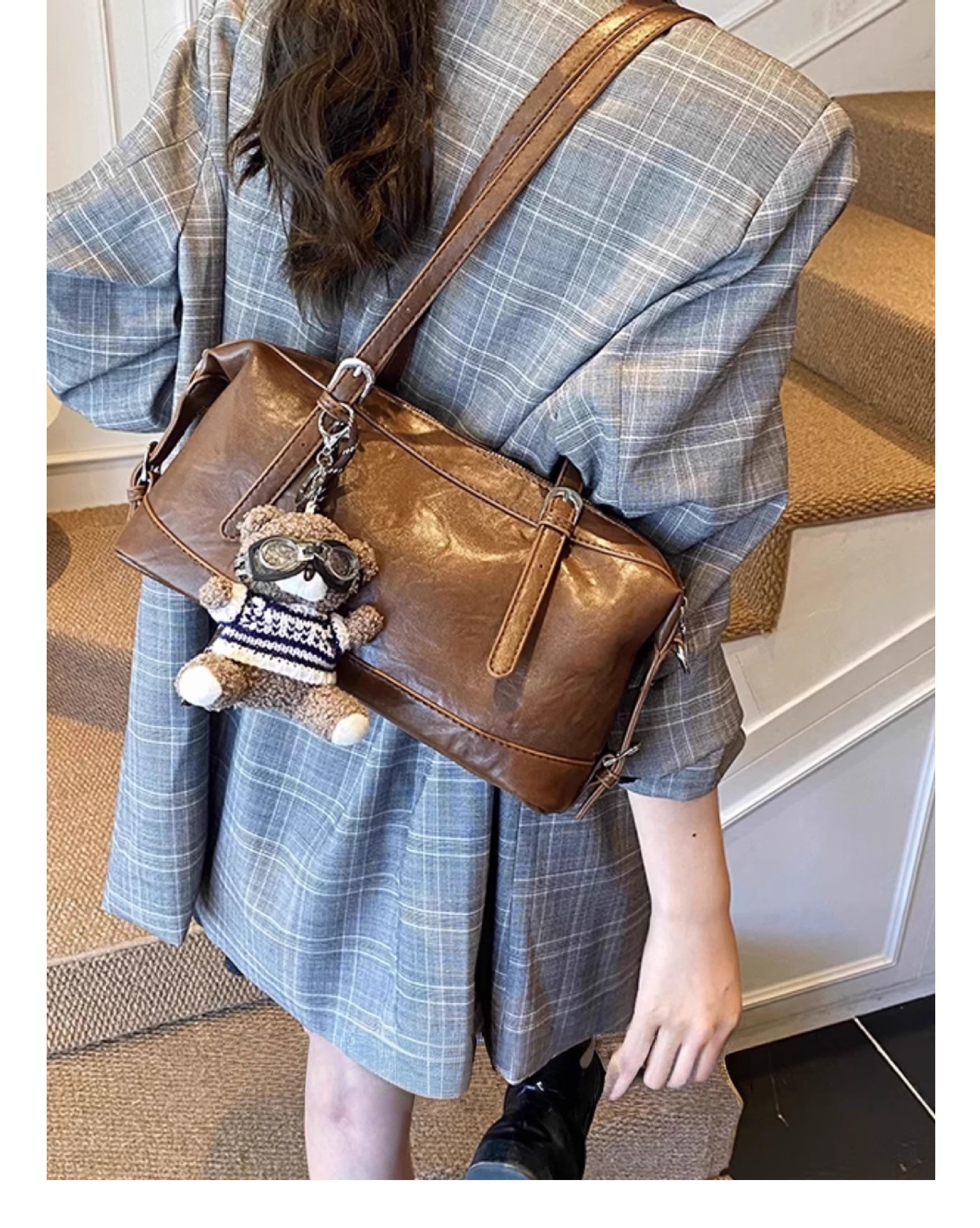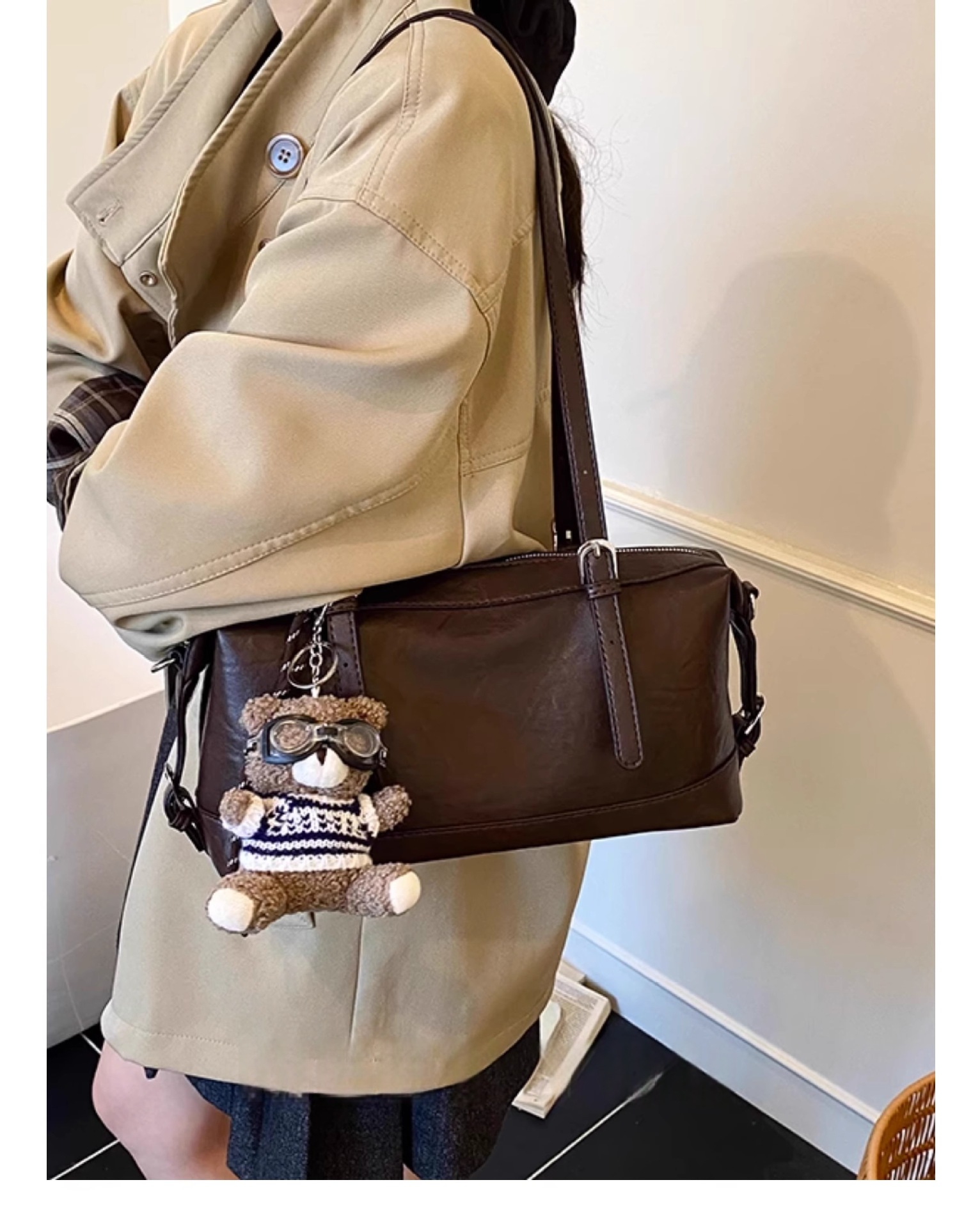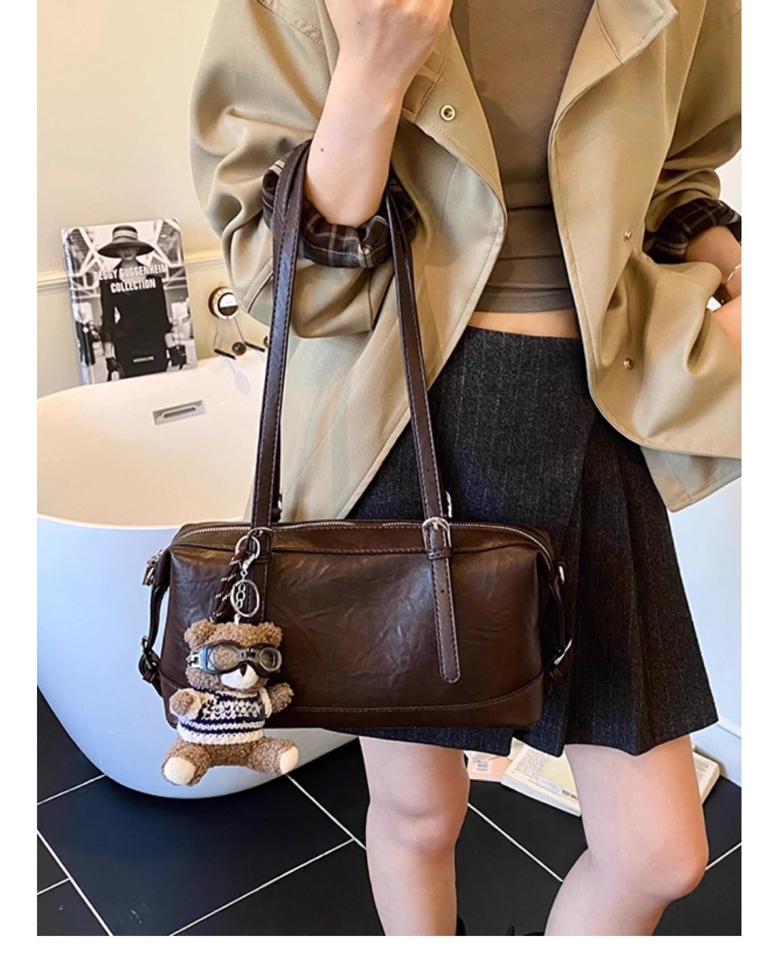 Weilan Pillow Bag Women's Retro Brown Oil Wax Leather Underarm Portable Shoulder Bag